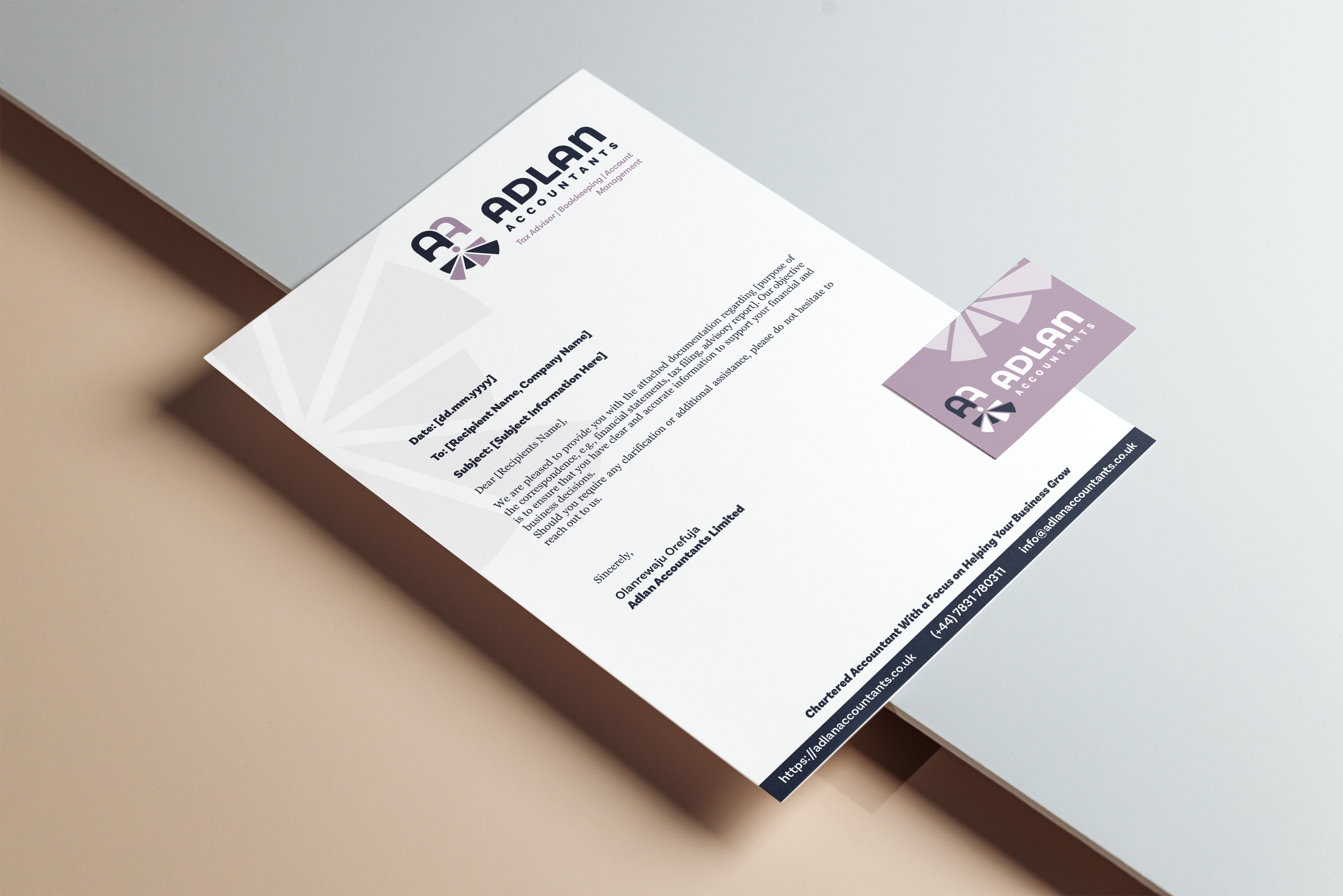 Initial simple branding for an accounting firm - this was created in 2022, following the brand inception. Since then, the concept and identity of the company have been further developed, and a new brand identity was created.